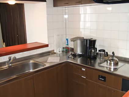 コーヒーメーカーは12杯専用。フィルターは用意してあります 小型冷蔵庫