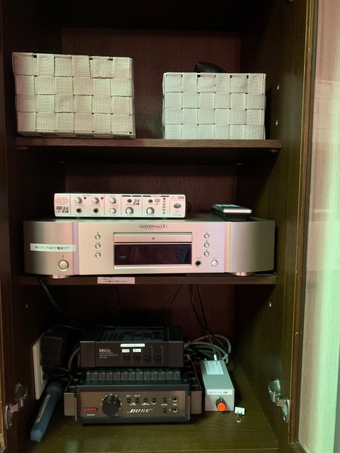 マイク2本、マイクスタンド、CDプレーヤー ※録音設備はなし